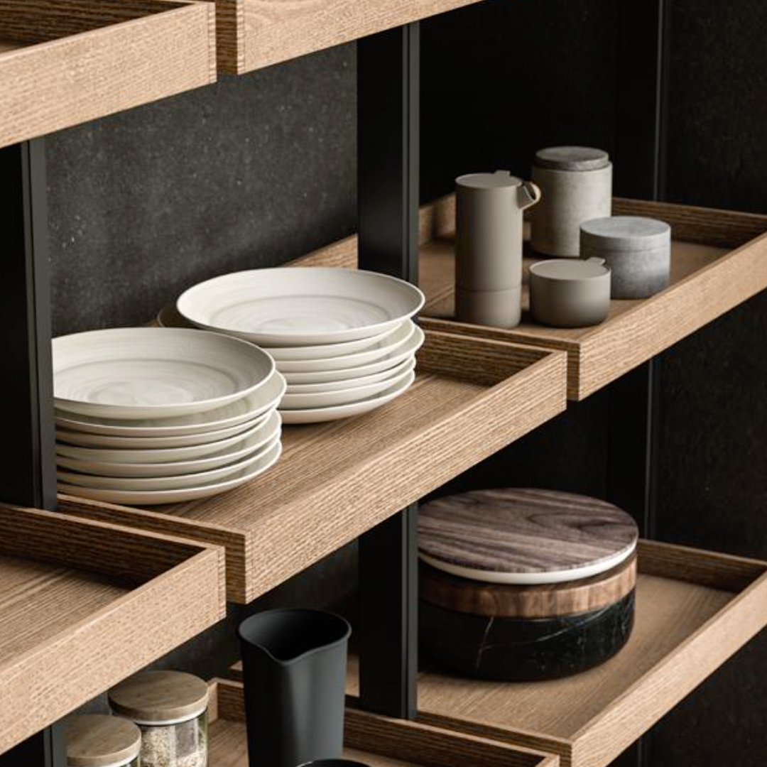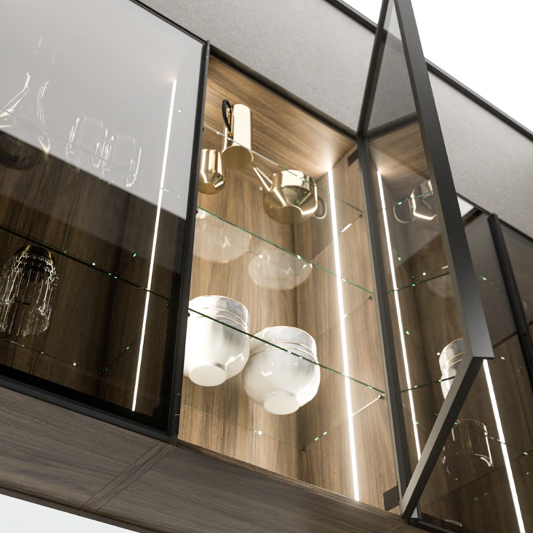 Il pensiero ispiratore del programma è la voglia di presentare e mettere a disposizione una vasta collezione di finiture e tipologie di ante dal gusto contemporaneo e in grado di essere sempre attuale e versatile.